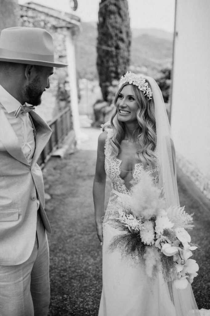 ” Die Planung mit dir war wie ein Spaziergang durch einen italienischen Sommertag: warm, mühelos, voller schöner Details. Ohne dich hätten wir weder diese Traumlocation in Veleggio gefunden noch so wunderbare Dienstleister. Unser Mix aus Familie, Freunden und Geschäftspartnern und insgesamt 150 Gästen war eine Herausforderung, die du mit Bravour gemeistert hast! Alles passte – zu uns, zum Ort, zur Stimmung. Danke für deinen Weitblick und dein offenes Herz!“